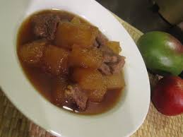 - Heat oil in a sauce pan and stir beef for three minutes then add winter melon, stir then add mixed spices for soup.