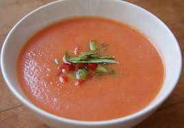 Once you have done all this put the gazpacho into a serving bowl, add the ice cubes and put it all in the fridge to chill.